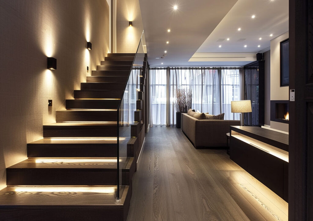 When choosing staircase lighting, it’s important to consider safety and functionality. The stair area must be well-lit to prevent accidents. Ensuring that the lighting eliminates shadows and makes each step clearly visible is essential.